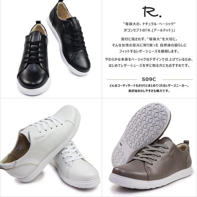 R.(アールドット) byリーガル レディース スニーカー 履きやすい S09C レースアップシューズ レザー 本革 軽量 幅広 R.