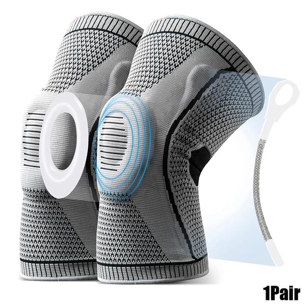 2 個の膝圧縮スリーブ - プロフェッショナル膝ブレースサポート、弾性滑り止め膝ラップ膝蓋骨スタビライザー & シリコーンゲルスプリング