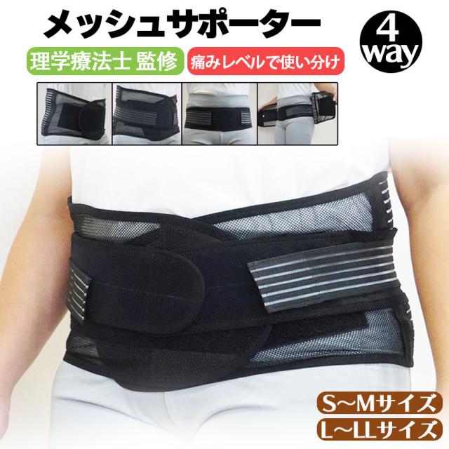 腰サポーター 2サイズ 腰と骨盤の4Way メッシュサポーター 骨盤サポーター 骨盤 腰サポーター 男女兼用 腰用 蒸れない 理学療法士監修 日本語説明書