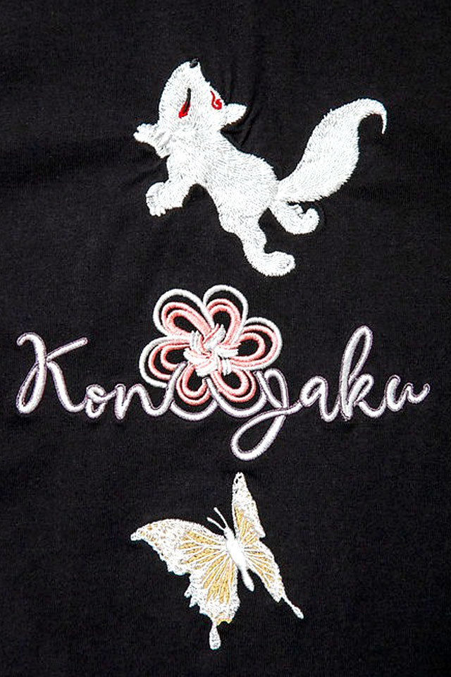 愛らしい狐のキャラクターが主役の【今昔】から「花紅柳緑総刺繍ジップパーカー(KJ-29227)」のご紹介です。