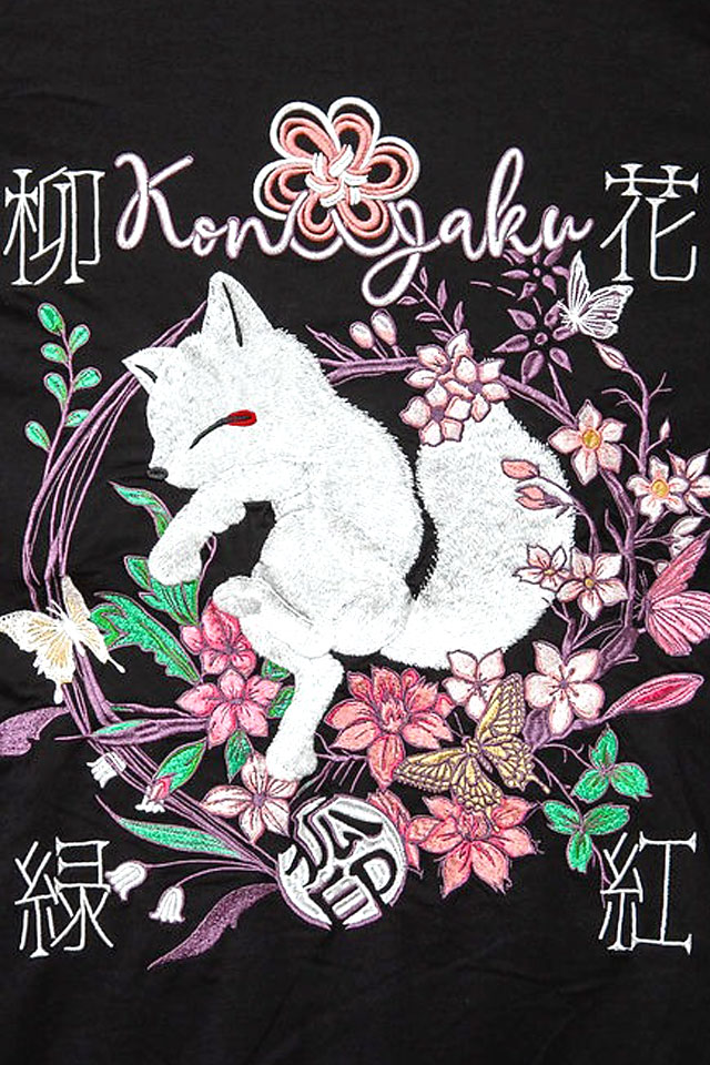 花紅柳緑総刺繍ジップパーカー 今昔 レディース KJ-29227 和柄 和風 狐 きつねキツネ こんじゃく