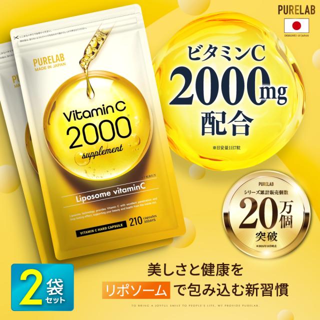 リポソーム ビタミンC サプリメント 2袋セット 高吸収 タイムリリース 健康 NMN アスタキサンチン スキンケア サプリ 2000mg 1袋210粒 30日分 PURELAB 送料無料 ギフト プレゼント
