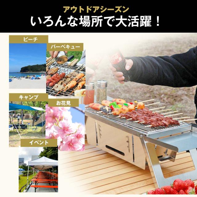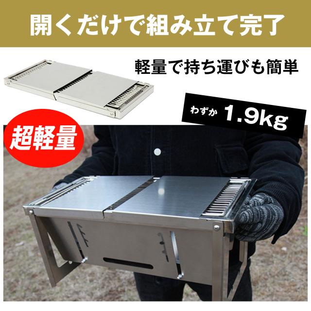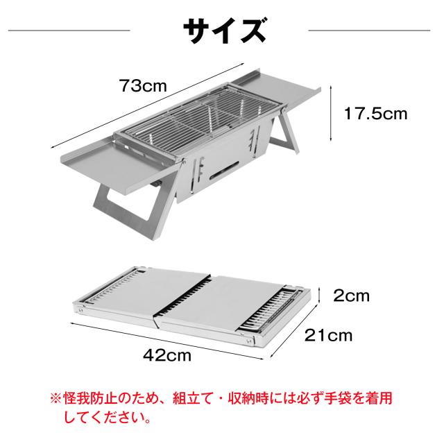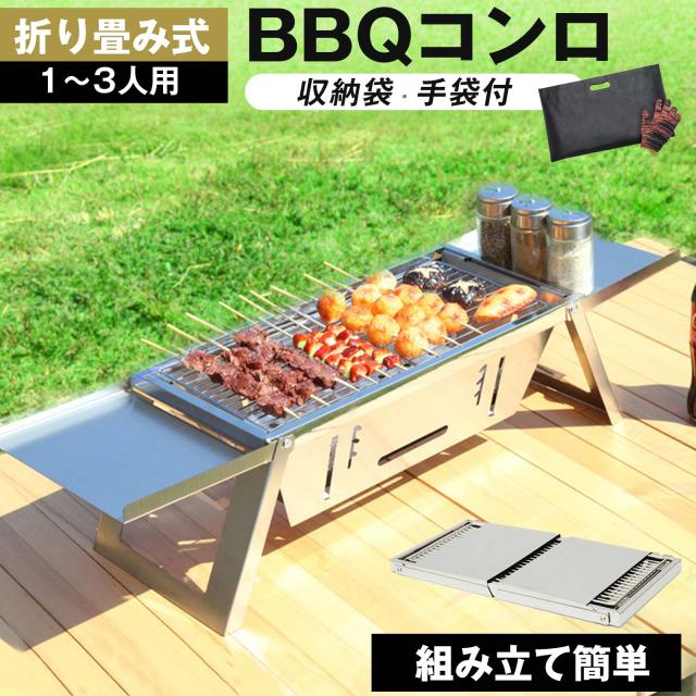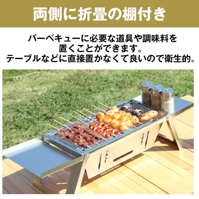 バーベキューコンロ 卓上 折り畳み ステンレス 1〜3人用 42cm×21cm BBQ コンロ 焜炉 収納 持ち運び 便利 焼肉 網焼き アウトドア キャンプ コンパクト 組み立て簡単