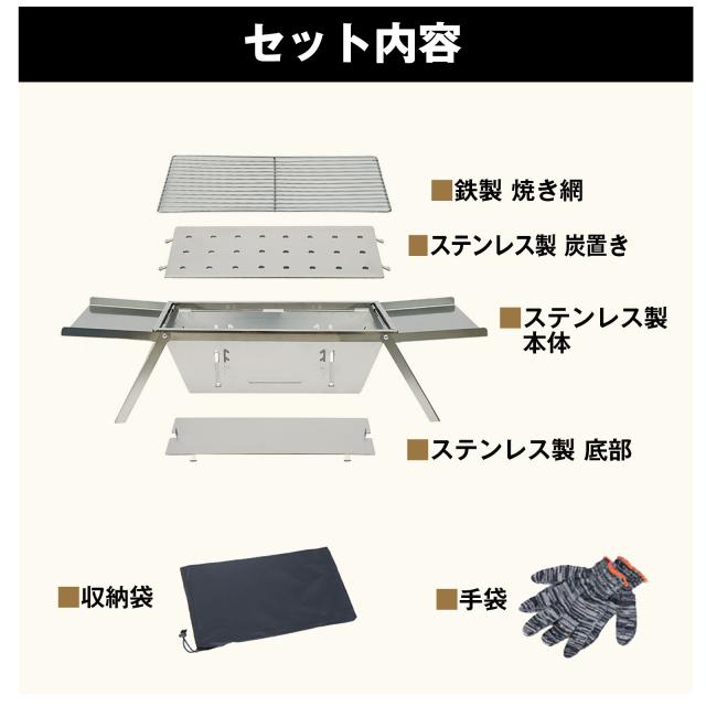 付属品:コンロ本体、焼き網、手袋、収納袋