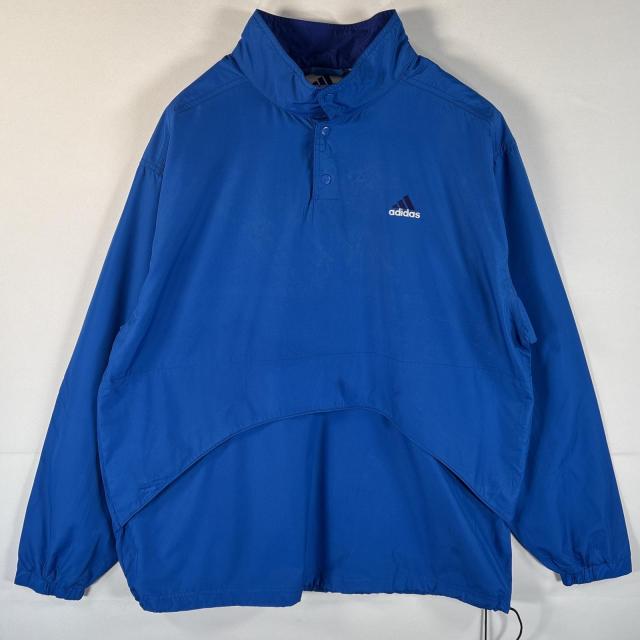 古着 90s/90年代 アディダス adidas ナイロンジャケット ハーフボタン パフォーマンスロゴ ワンポイント刺繍ロゴ L ブルー メンズ