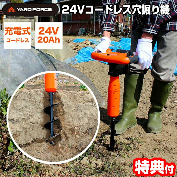 TV話題【選ぶ景品】 YARD FORCE コードレス穴掘り機 本体+充電器+バッテリー 24V LXCMD 30-JP 充電式 穴掘り機 電動 穴あけ機 園芸 穴掘り器 らせん穴掘り器 穴掘りドリル 園芸 農業 家庭菜園 穴あけマシン 穴あけドリル ヤードフォース 支柱挿し 追肥 水抜き ガーデニング