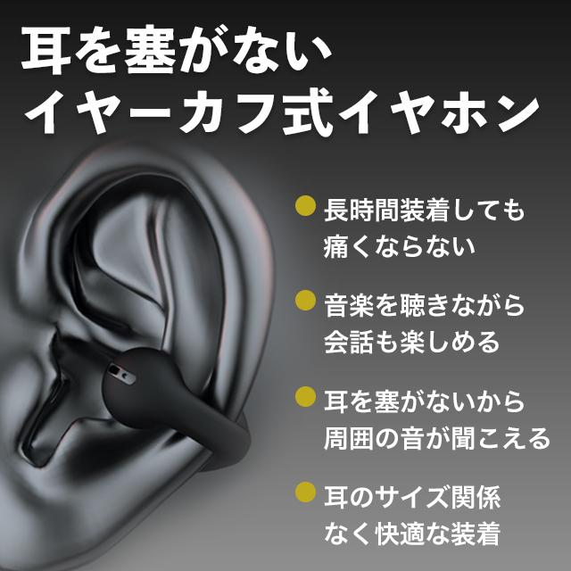 イヤーカフ型で耳を塞がないので長時間の使用でも圧迫感が無く、耳が痛くなりません。