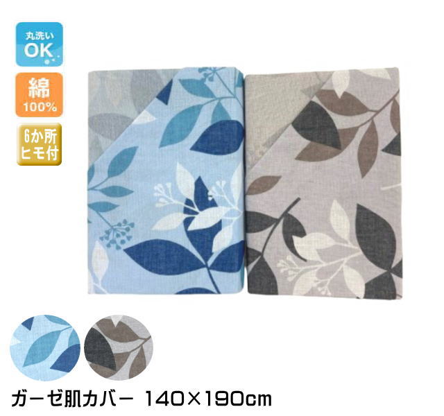 綿素材 ガーゼ肌カバー 140×190cm(シングルサイズ)(リーフ)(I-GH4935)