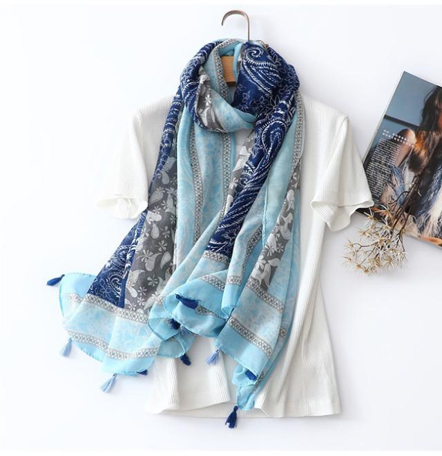 新作 ストール 大判 スカーフ 薄手 羽織り レディース 180*85cm タッセル付き 日よけ ショール 肩掛け 春夏 海 ビーチ 日焼け対策 冷房対策 花柄