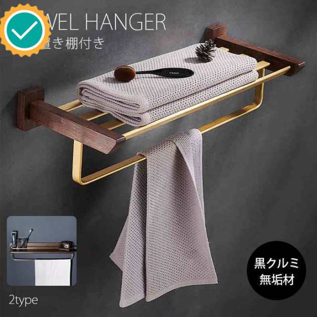 木製 真鍮 タオル掛け 洗面所 ラック付き タオルホルダー 壁 棚付き バスタオルハンガー