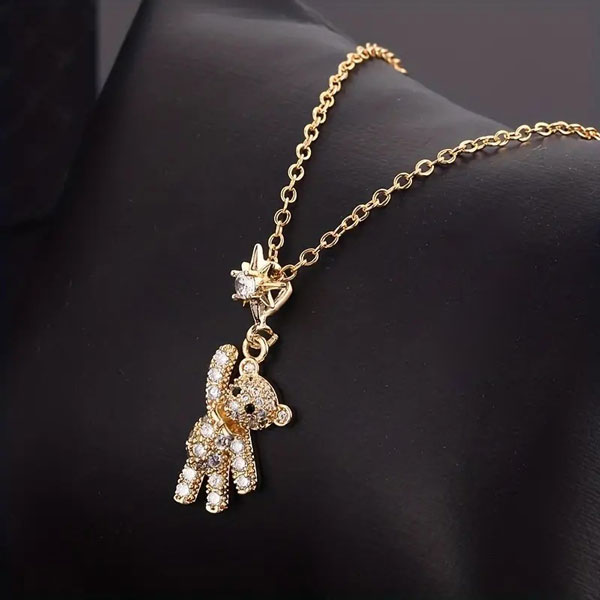 送料無料 1000円ポッキリ テディベア ネックレス ビジュー キラキラ アクセサリー ゴールド 18Kメッキ ファッション カジュアル パーティー ギフト プレゼント