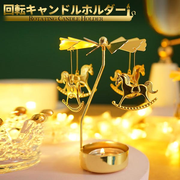 送料無料 キャンドル ホルダー ロッキングホース ゴールド 金色 インテリア 回転 雰囲気 照明 パーティー イベント 雰囲気