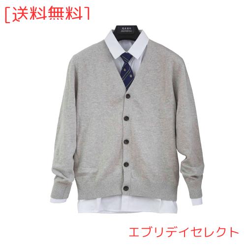 [Wowcarbazole] カーディガン 学生 メンズ Vネック スクールカーディガン 男 セーター ニット ビジネス 綿 無地 春秋冬 グレー(WJP0008G