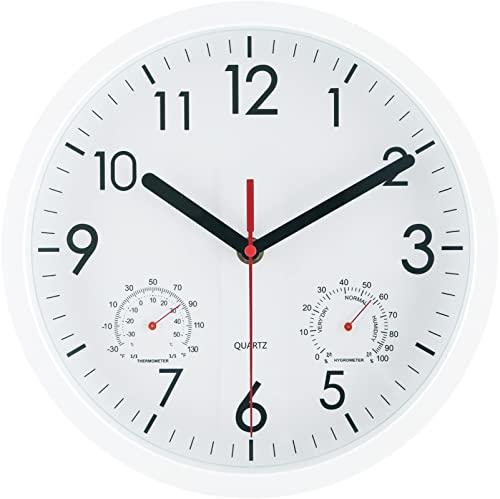 不二貿易(Fujiboeki) 掛け時計 幅25×奥行4×高さ25cm ホワイト 温湿度計付 連続秒針 アーバン 37861