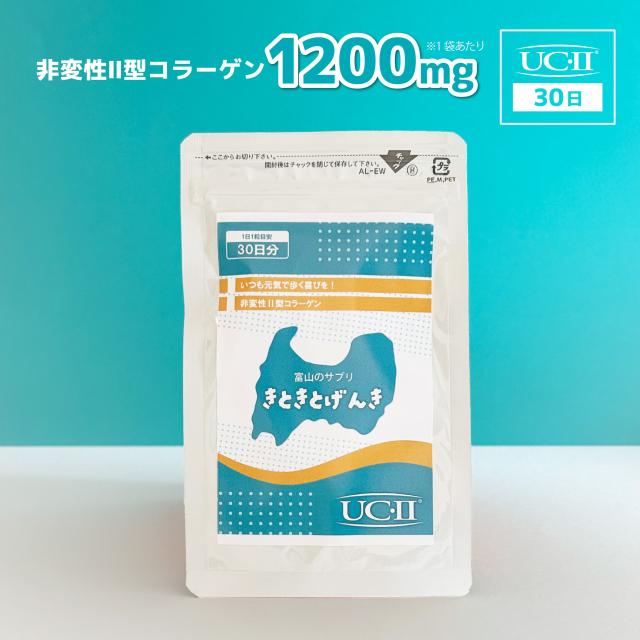 きときとげんき UC-2 UC-II サプリ 膝 腰 関節 30日 コラーゲン グルコサミン 送料無料 渡邊薬品 サプリメント 関節痛 元気 30粒 1個