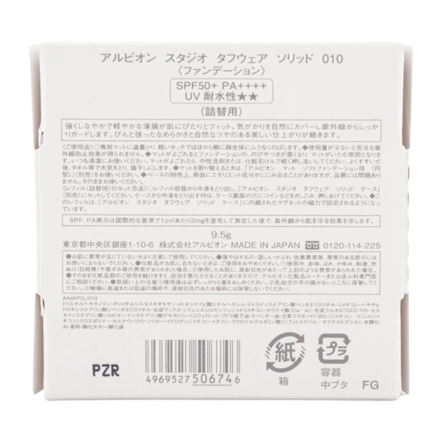 ALBION アルビオン タフウェア ソリッド 010 ベージュ レフィル 9.5g SPF50+ PA++++ UV 耐水 薄膜 紫外線 なめらかさ ツヤ [ギフトラッピング対応]