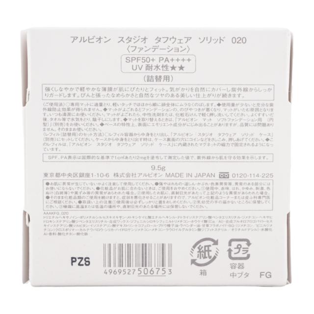 ALBION アルビオン タフウェア ソリッド 020 ピンクベージュ レフィル 9.5g SPF50+ PA++++ UV 耐水 薄膜 紫外線 なめらかさ ツヤ [ギフトラッピング対応]
