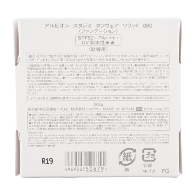 ALBION アルビオン タフウェア ソリッド 060 ベージュ レフィル 9.5g SPF50+ PA++++ UV 耐水 薄膜 紫外線 なめらかさ ツヤ [ギフトラッピング対応]