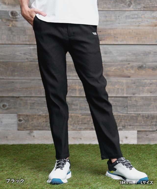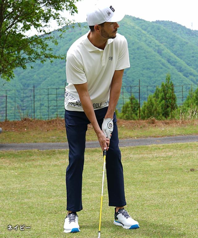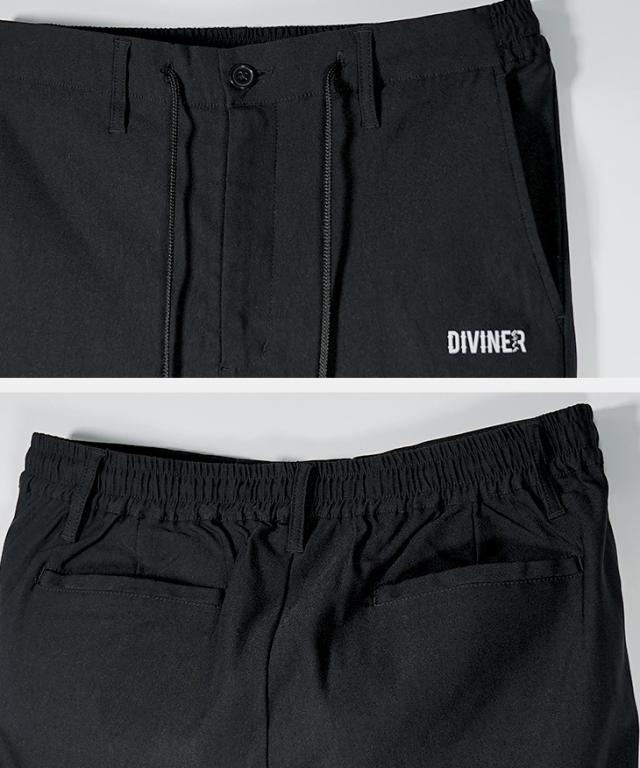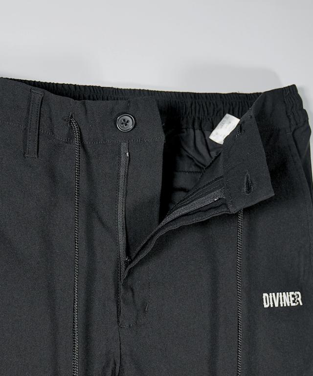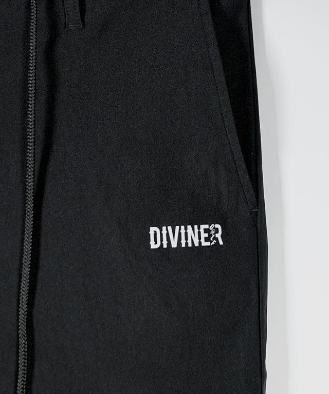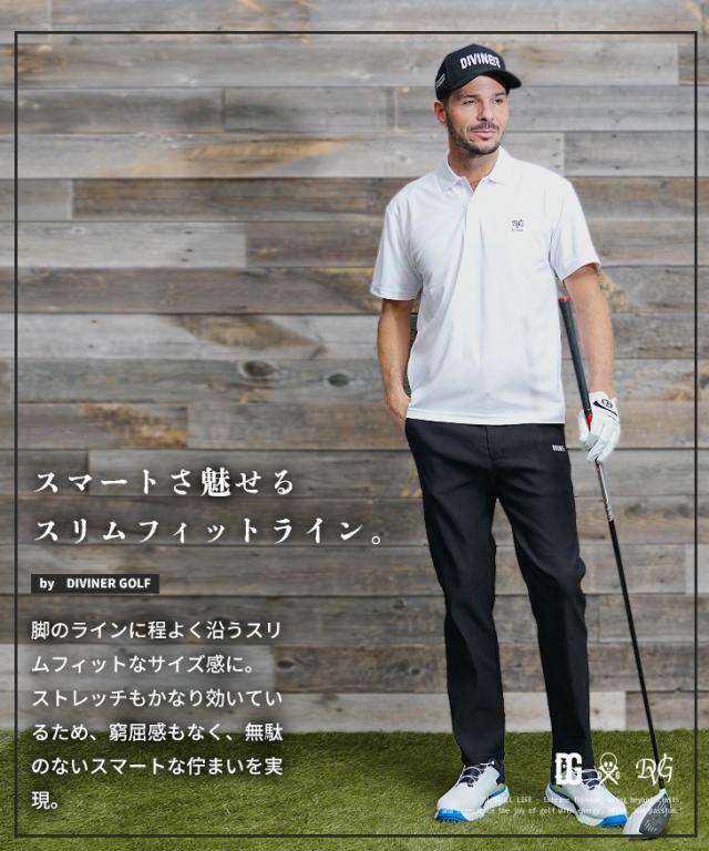 DIVINER GOLF(ディバイナーゴルフ)『DVGストレッチパンツ』【DVGストレッチパンツ】■Design/デザインパフォーマンスを最大限に引き出し、スタイルにも一切の妥協を許さない。DVGストレッチパンツは、プレー中の快適さと洗練されたデザインを両立した一本。長時間の着用でもストレスを感じさせないゴム仕様のウエスト。ラフに穿けるのに、ベルトループ付きでしっかりとしたフィット感も確保。視線を引きつけるのは、フロント左太ももと右ふくらはぎに施されたロゴプリント。シンプルながらも個性を主張し、どんなシーンでも映えるデザインに仕上げた。冬、春、そして夏へ。シーズンを超えて活躍する万能アイテム。DVGストレッチパンツで、攻めのスタイルを手に入れろ。