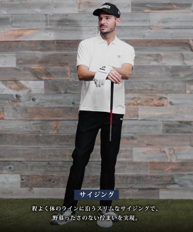 肩幅は指一本分落ち、着丈はお尻が全て隠れる長さです。身幅・ウエスト共にゆとりがあります。生地がさらさらしているので汗をかいても張り付き感がなく綺麗にスイングができます。