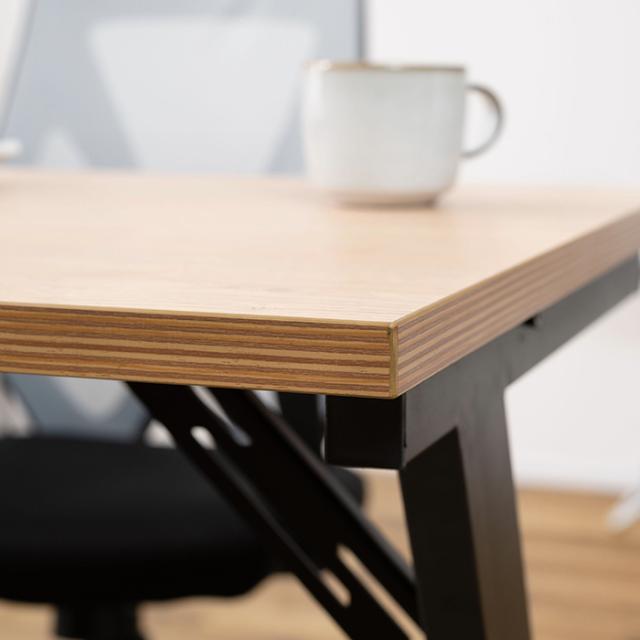 特徴的なZ型脚はも足元を広く使える設計で、ワゴンやデスクトップパソコンなどをすっきりデスク下に収納できます。