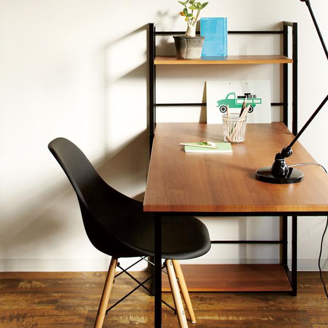 収納ラックが一体化した便利なワーキングデスク