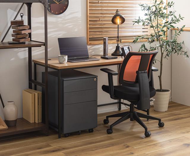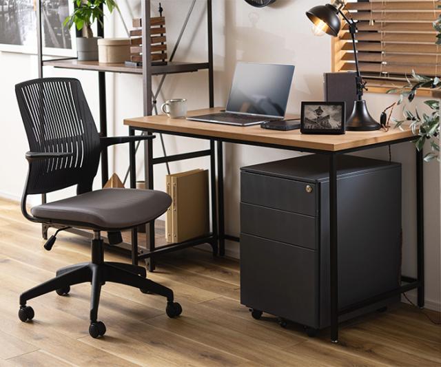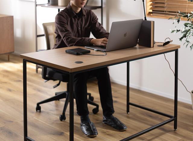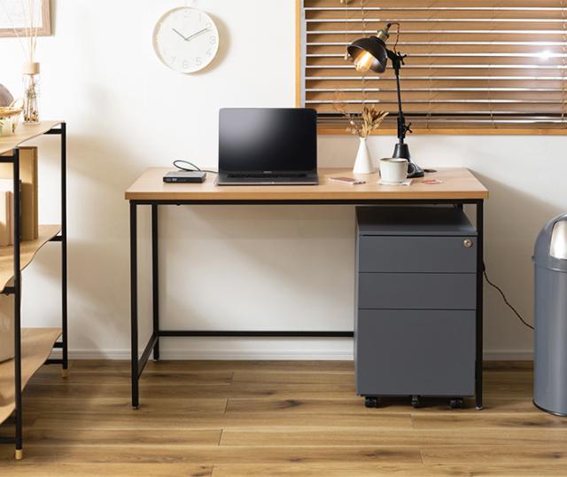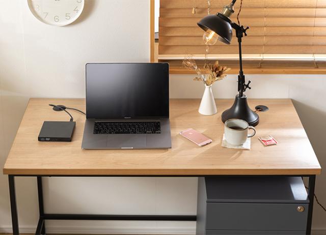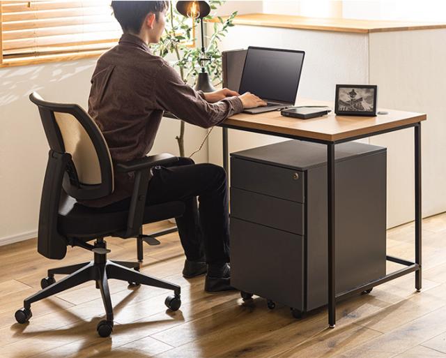 シンプルながらも足元を広く使える設計で、ワゴンやデスクトップパソコンなどをすっきりデスク下に収納できます。