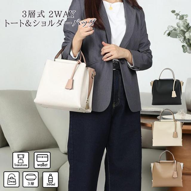 軽量 3層式 2WAY サイドジップ バイカラー トート&ショルダーバッグ A4 レディース | 2色 斜め掛け ショルダーバッグ トートバッグ 通勤 通学 かばん BAG シンプル 軽い おしゃれ プレゼント