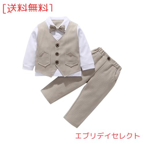 ◆商品名:[Suerba] ベビーフォーマル 男の子 スーツ ベスト 子供服 子供タキシード 上下セット 七五三 結婚式 (カーキ, 90)