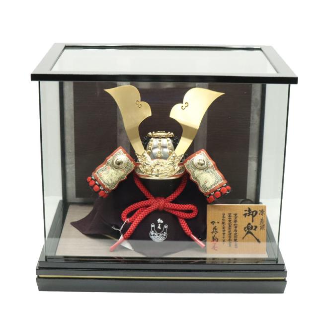 五月人形 ケース入兜 加藤鞆美作 三分の一 幻 源義経 USB照明付き 2025-yb034 幅41cm ケース飾り 端午の節句 節句 お祝い インテリア