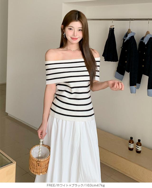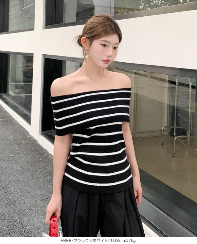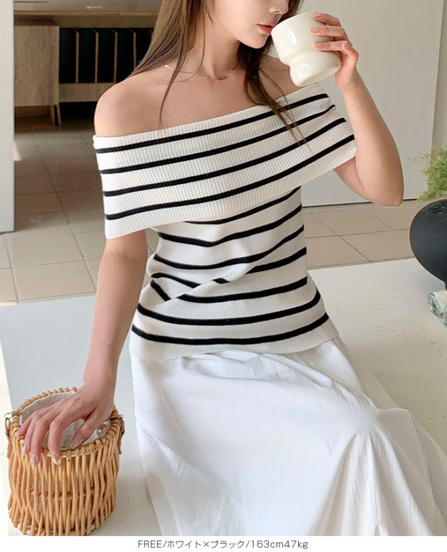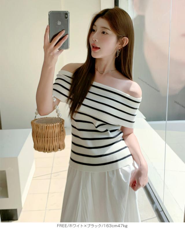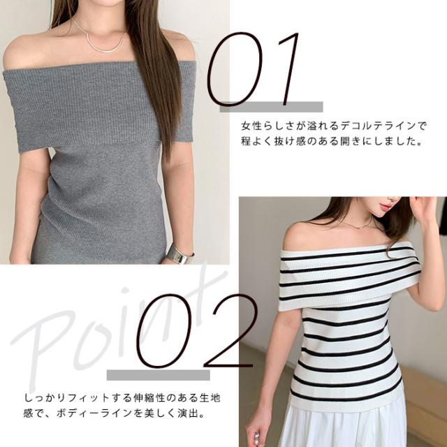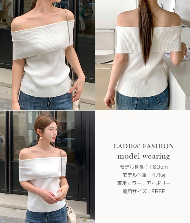 33%OFFクーポン!オフショルダー セーター ニットトップス 半袖 レディース ノースリーブ リブニット 肩見せ 体型カバー 伸縮性 シンプル おしゃれ きれいめ 大人カジュアル 韓国風 トレンド【オフショルダーノースリニット】春新作 ●即納●