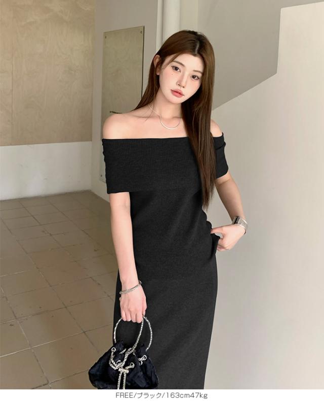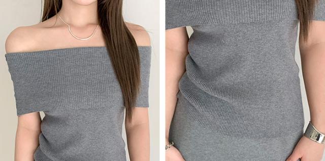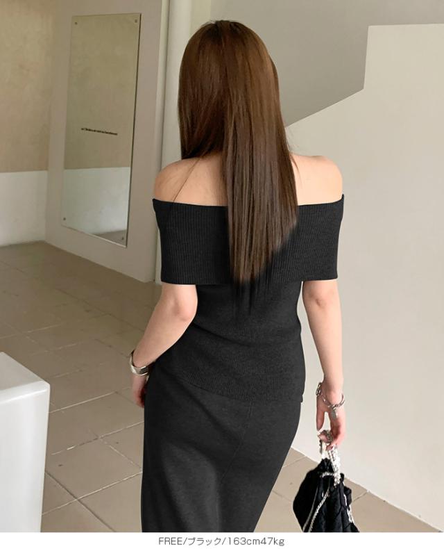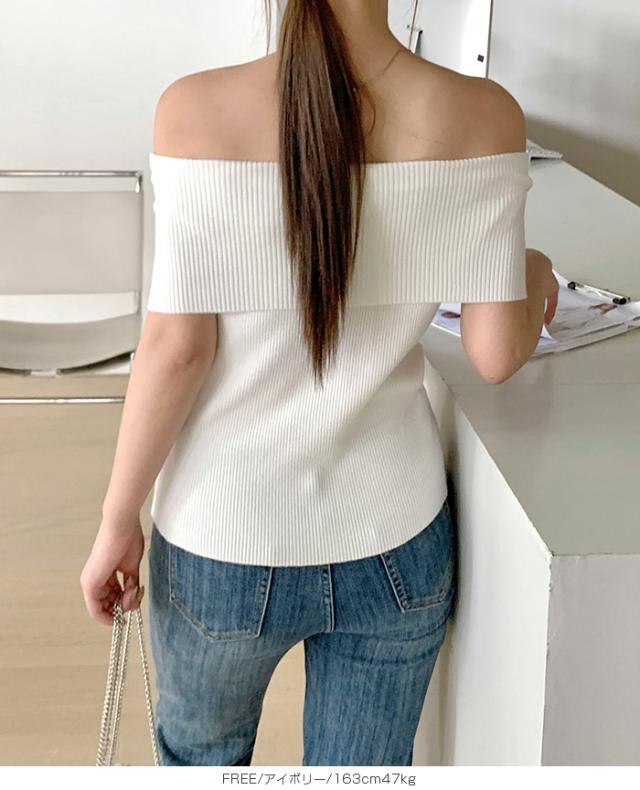 デコルテを美しく見せるオフショルダーデザインが魅力のリブニットトップスが登場!
