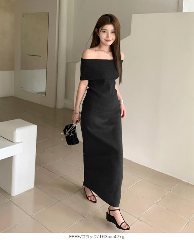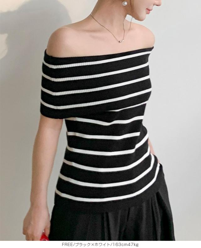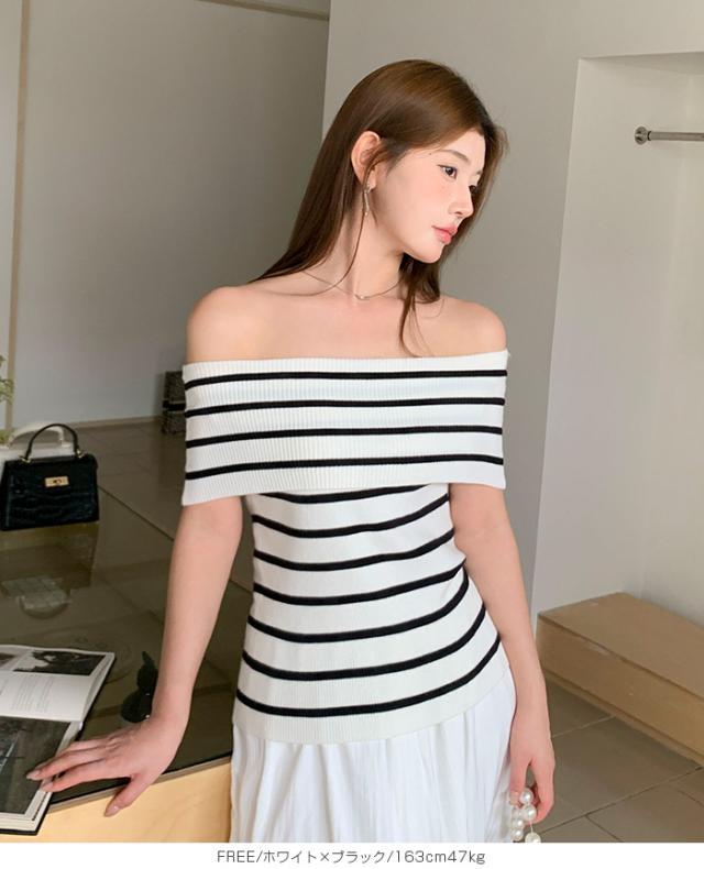 【トレンド感たっぷり!オフショルダーノースリニット】