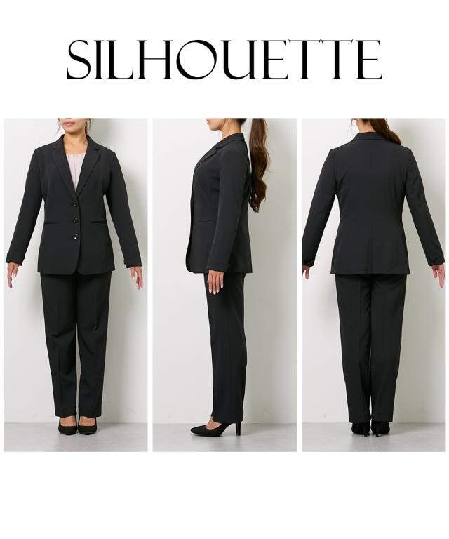 【大きい胸専用】【レディーススーツ】RISPY 洗えるパンツスーツ(ロング丈テーラードジャケット+ストレートパンツ)