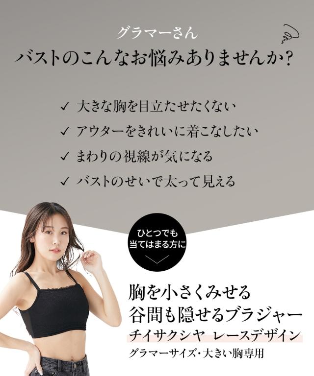 レディース 胸を小さくみせる 谷間も隠せる チイサクシヤ レース デザイン グラマーサイズ 大きい胸専用 インナー D70/D75/D80