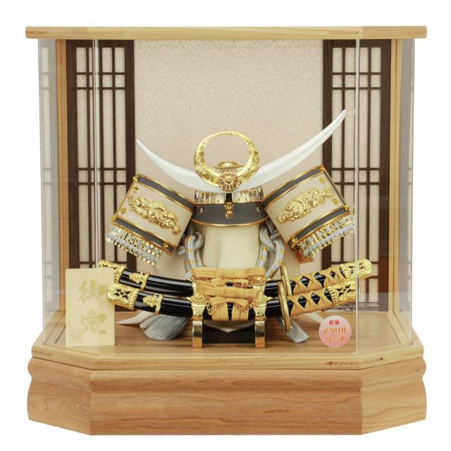 五月人形 コンパクト 8号 兜 ケース飾り アクリルケース 六角 かぶと 木目 5月人形 おしゃれ かっこいい モダン 2025