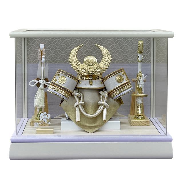 五月人形 コンパクト 5号 兜 ケース飾り アクリルケース かぶと アイボリー 紫 5月人形 おしゃれ かっこいい モダン 2025
