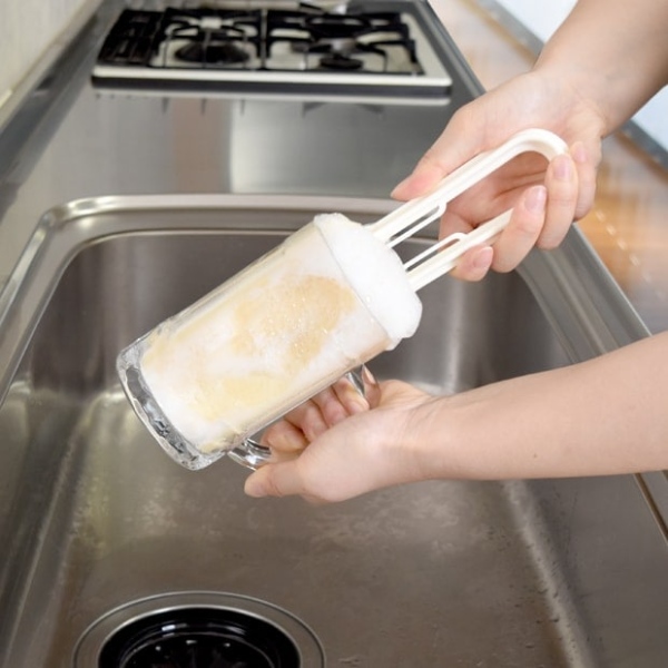 柄が付いているので、手が届かないコップの底までしっかりと洗うことができます。