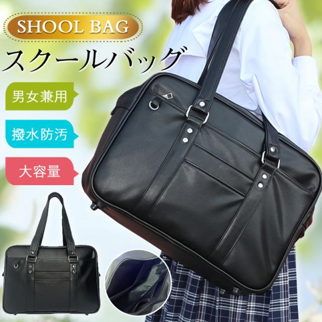 即納 スクールバッグ スクバ 学生鞄 制服バッグ 通学カバン 合皮 肩掛け 手提げ 女子用 防撥水 軽量 無地 大容量 A4 高校生 中学生 定番 男女兼用 開学祭り