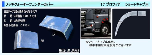 クロームメッキ クオーターフェンダーカバー ショートキャブ車用 17プロフィア H29.5〜 日野 HINO ATS AB07H075