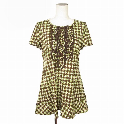 【中古】ギャラリービスコンティ GALLERY VISCONTI ワンピース ミニ チュニック フリル リボン 半袖 総柄 2 緑 グリーン レディース