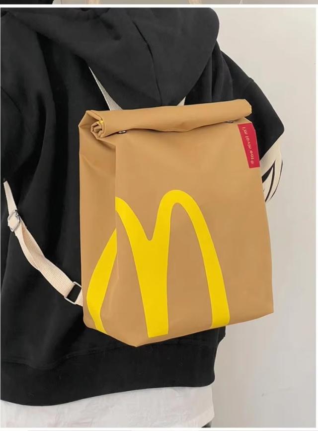 送料無料 再入荷 ナップザック リュック バックパック 限定版 バーガーショップ 食いしん坊 紙袋風デザイン 可愛い ファーストフード ジャンクフード おしゃれ ロゴ パロディ Mマーク おもしろデザイン エモい 個性的 ウーバー フライドポテト ナイロン フレンチフライ