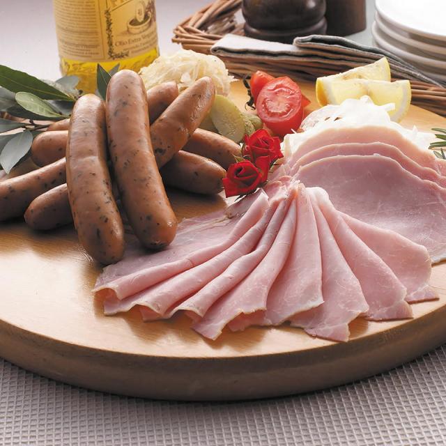 内容:ロースハム(ブロック)300g、モモハム(ブロック)270g、ペッパーハム(ブロック)200g、チューリンガーウインナー120g、ブラボーウインナー120g、オリジナルドレッシング200ml