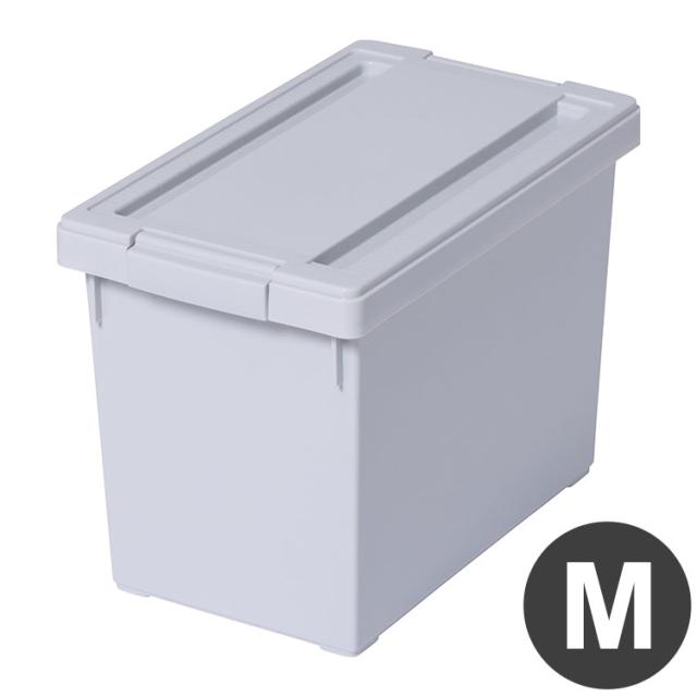インテリアに馴染むスモーキーカラーのフタ付き収納ボックス。奥行30cmの「いれと庫 interior」シリーズ。Mサイズ。壁面収納や棚に置きやすい。