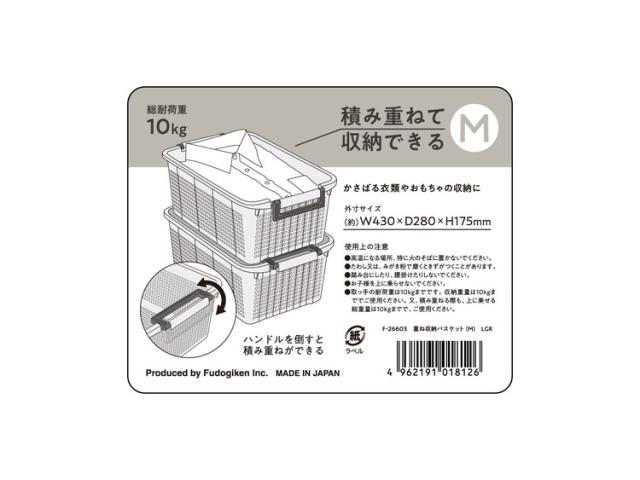 【2個セット】 不動技研 重ね収納バスケット M 深型 ライトグレー F-26603 銀イオンとセラミックの2つの機能(代引不可)【送料無料】