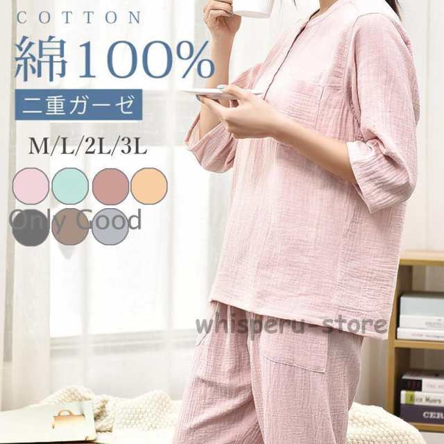 ルームウェア パジャマ レディース 二重ガーゼ 綿100% 前開き 長袖 長ズボン 春 夏 秋 ダブルガーゼ ガーゼパジャマ 母の日 敏感肌 高齢者 ふんわり 柔らかい
