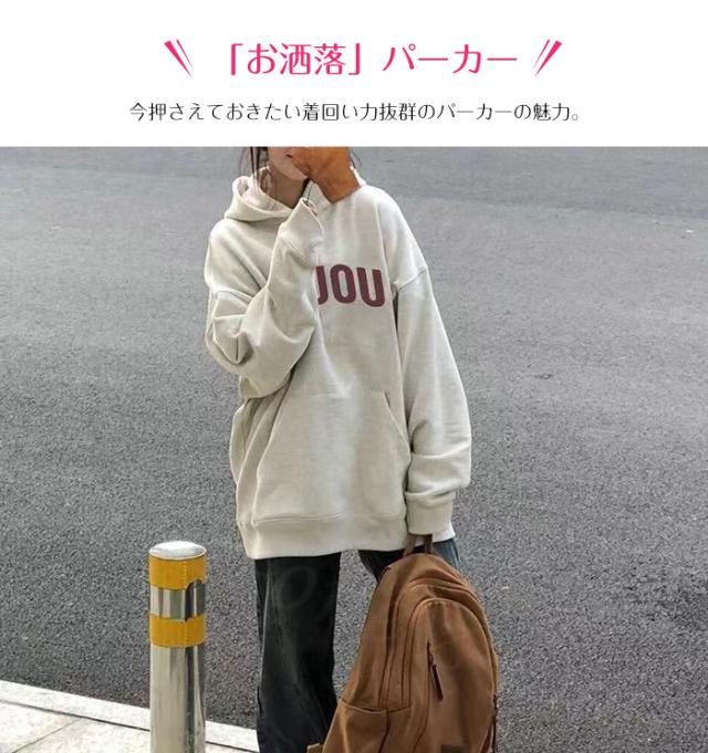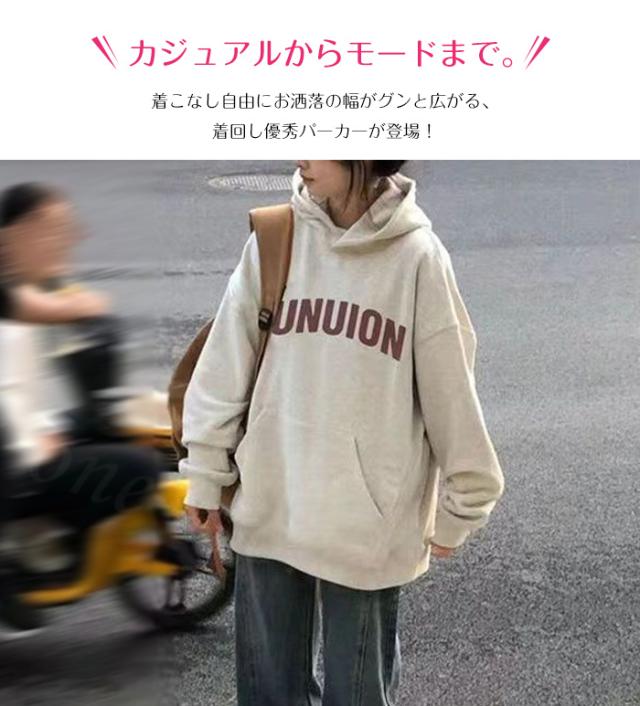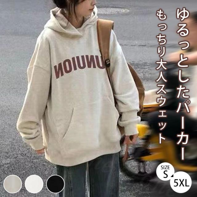 パーカー トレーナー スウェット ロゴ付き 春新作 送料無料 レディース 大きめ ゆったり トップス 長袖 フード付き カジュアル おしゃれ 体型カバー 無地 裏起毛なしor裏起毛あり 可愛い 女子力UP Tシャツ 入学式 入園式