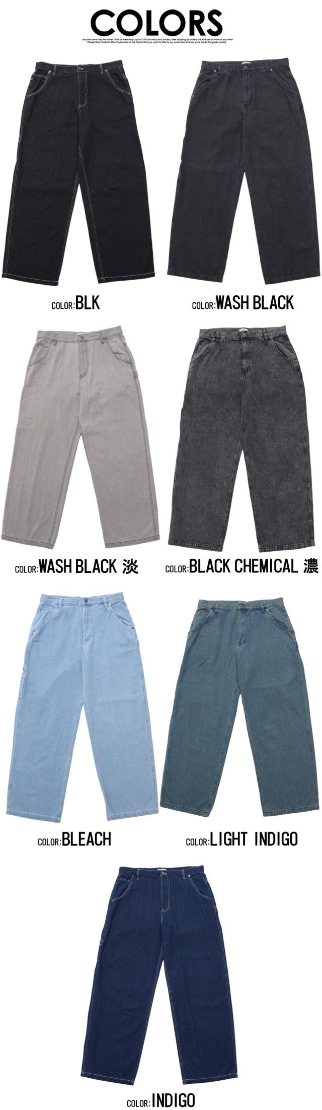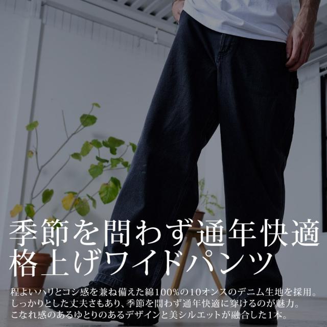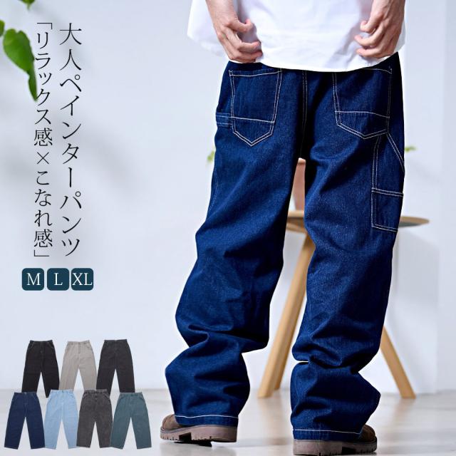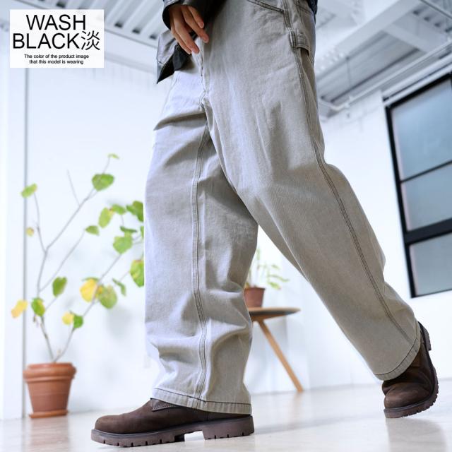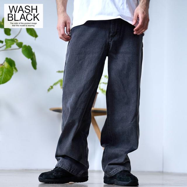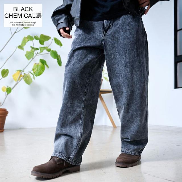 ワイドパンツ メンズ おしゃれ ペインターパンツ デニムパンツ 10ozデニム 10オンス ジーンズ ジーパン Gパン シンプル 大人 ブラック ケミカル インディゴ ブリーチ 黒 青 M L XL ブランド 20代 30代 40代 男 男性 ユニセックス 春 夏 秋 冬 ファッション [DE0405]
