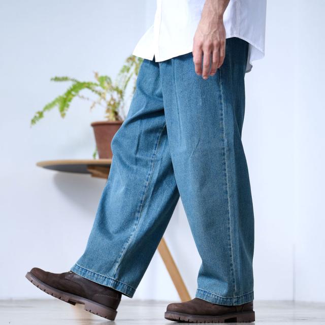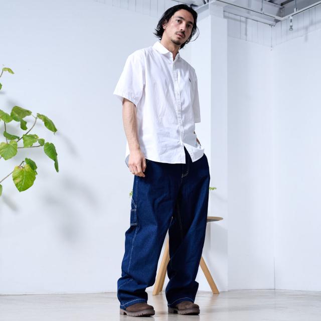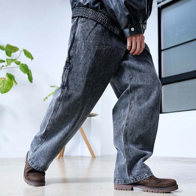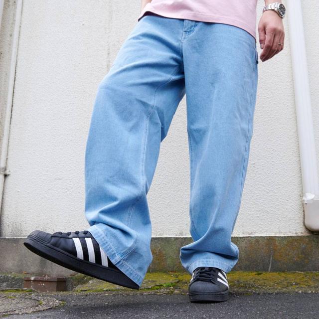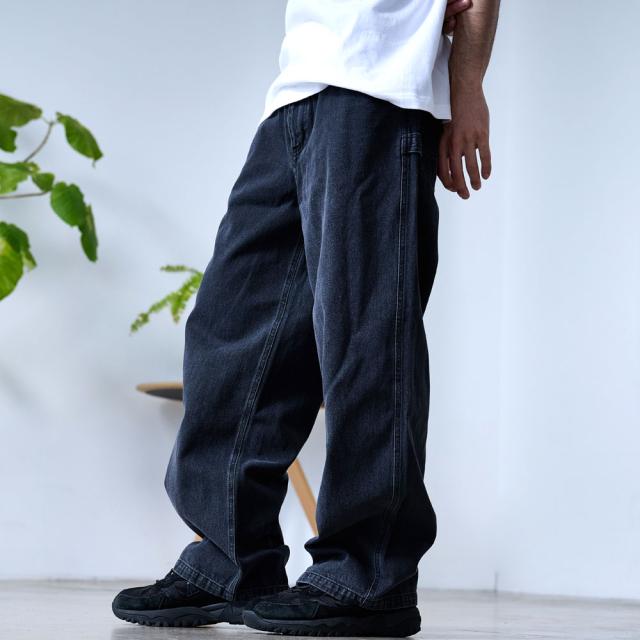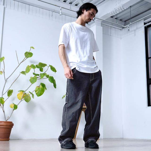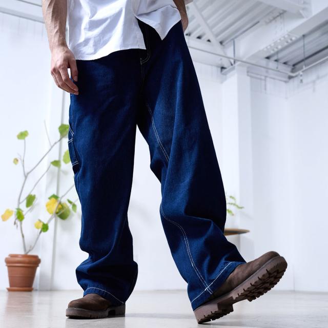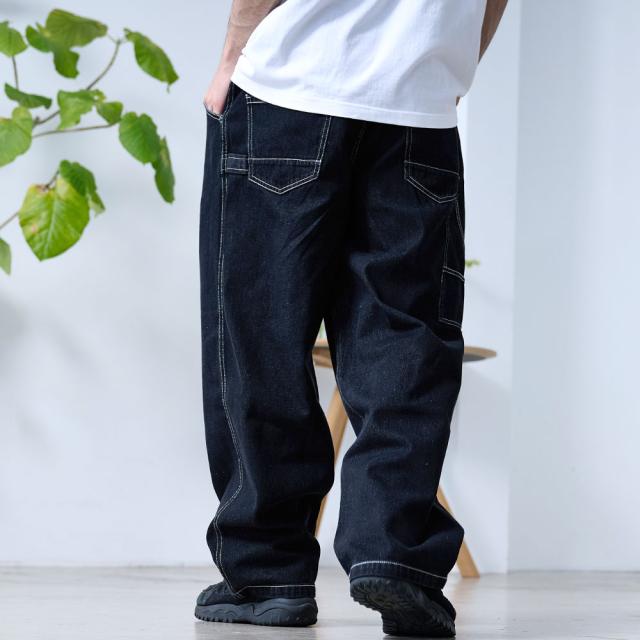 ワイドパンツ メンズ おしゃれ ペインターパンツ デニムパンツ 10ozデニム 10オンス ジーンズ ジーパン Gパン シンプル 大人 ブラック ケミカル インディゴ ブリーチ 黒 青 M L XL ブランド 20代 30代 40代 男 男性 ユニセックス 春 夏 秋 冬 ファッション [DE0405]