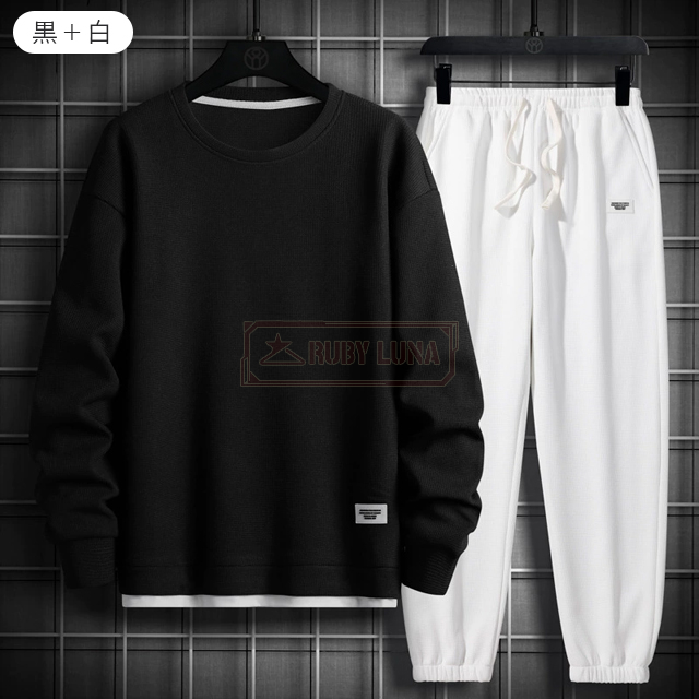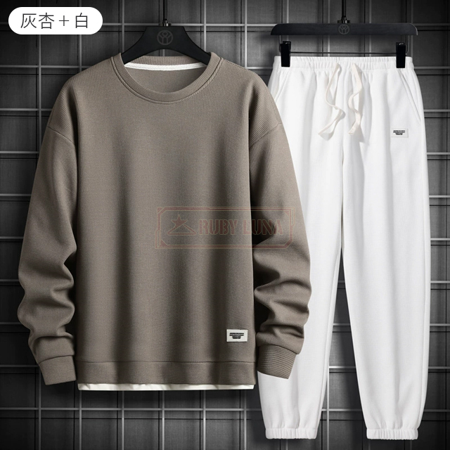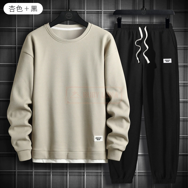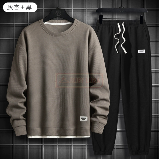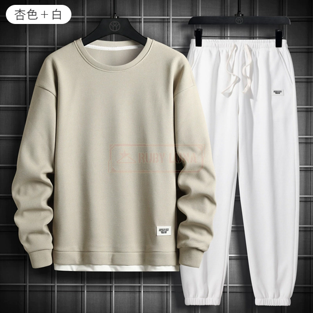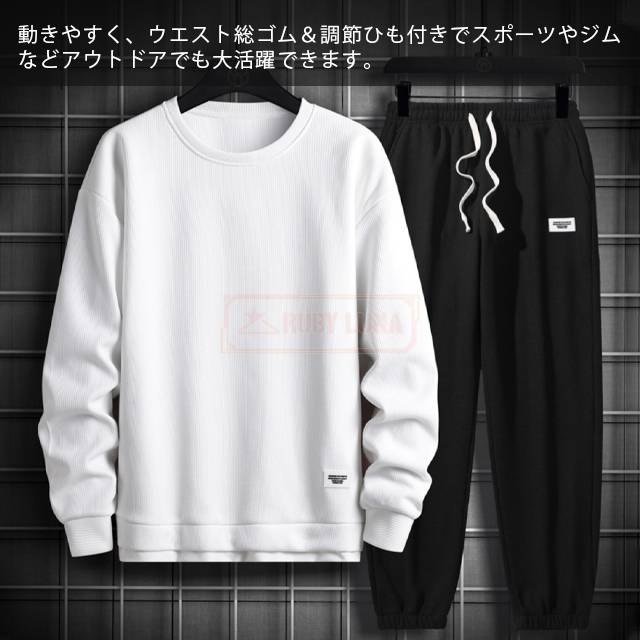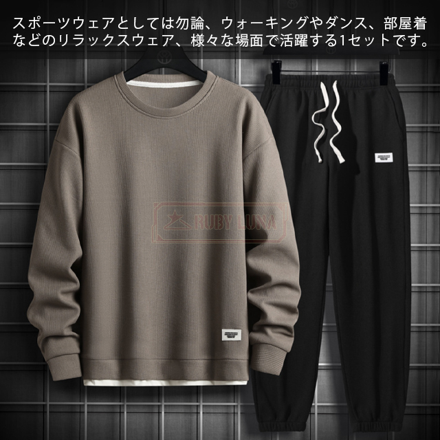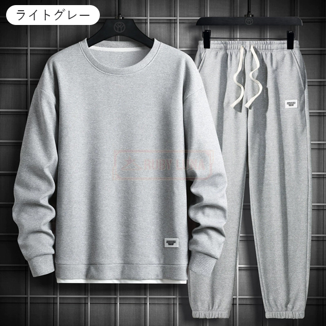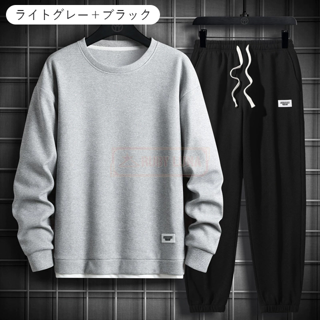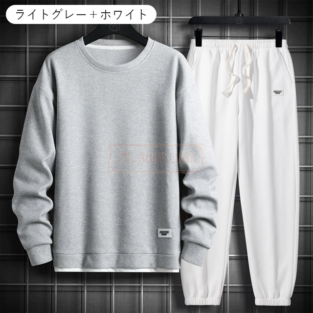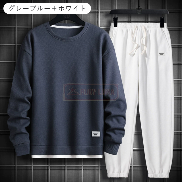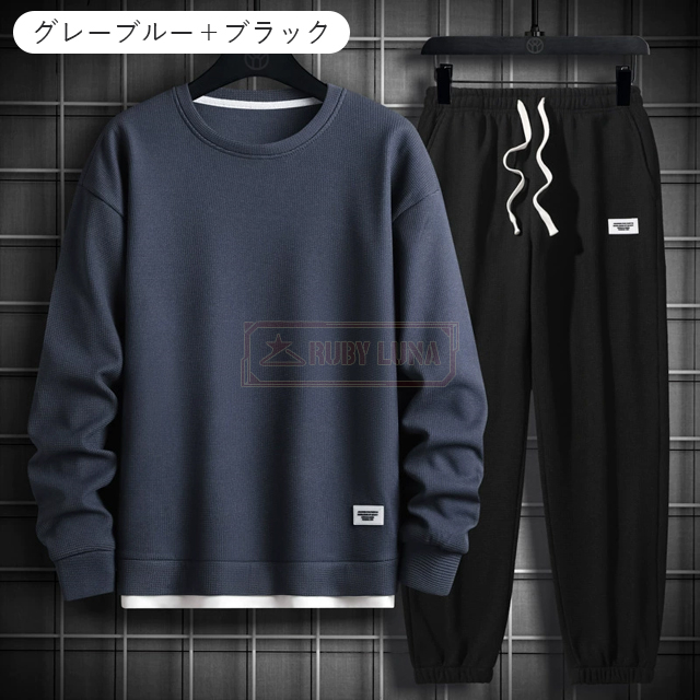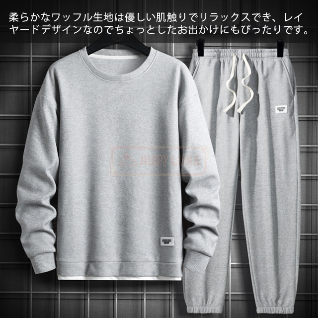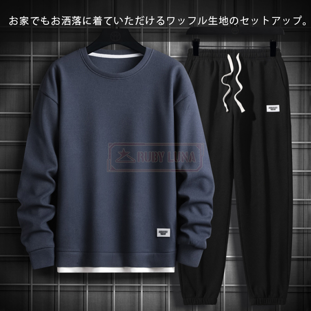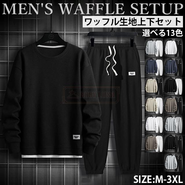 最安挑戦 春新作 送料無料 新作 セットアップ メンズ ジャージ ワッフル生地 セットアップ ゆったり プルオーバーパーカー クロップドパンツ 2点セット 重ね着風 ジャージ スポーツウエア 運動着 春 秋 カジュアル 部屋着 ルームウェア